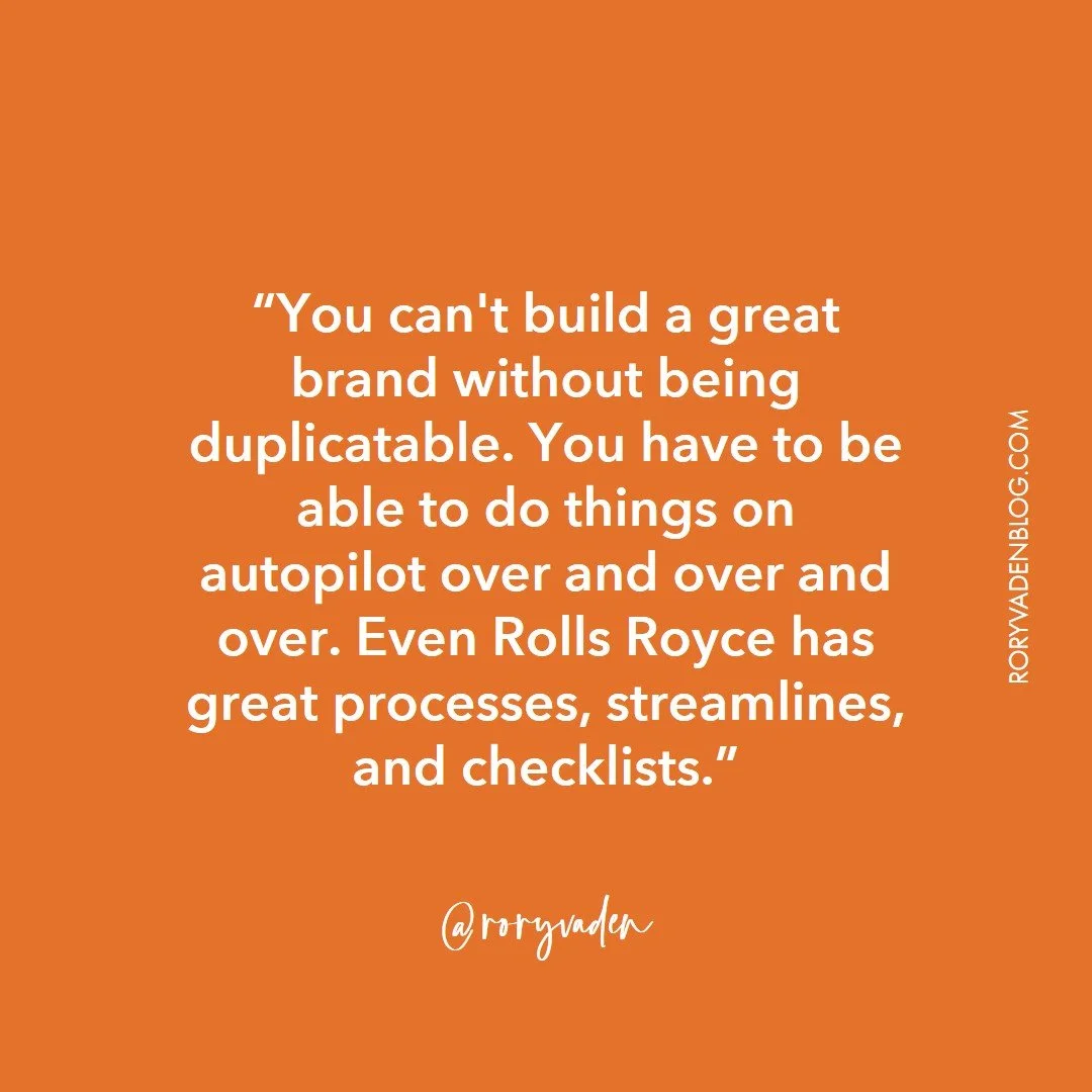 But even Rolls Royce has great processes, streamlines, and checklists. You can't build a great brand without being duplicatable. You have to be able to do things on autopilot over and over and over.