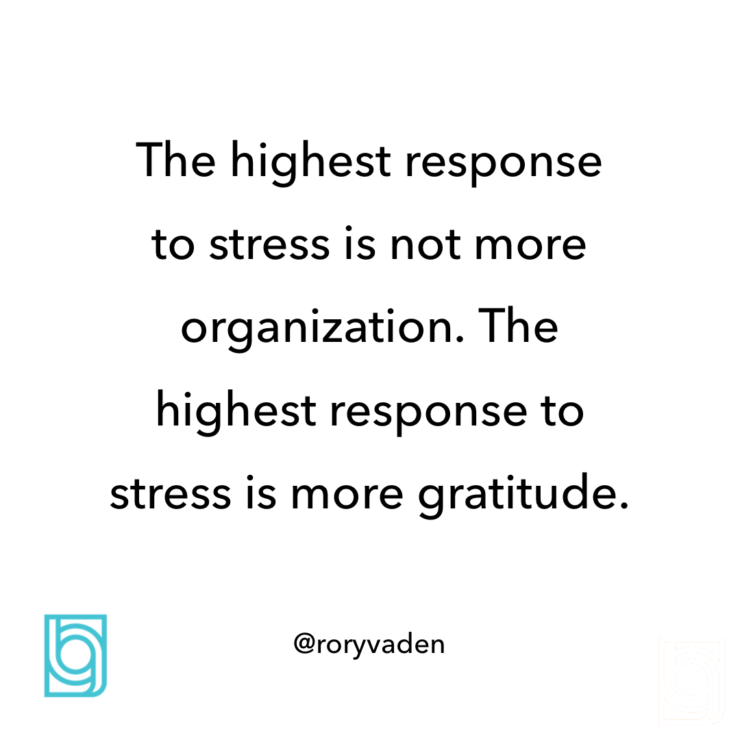 The highest response to stress is not more organization. The highest response to stress is more gratitude.