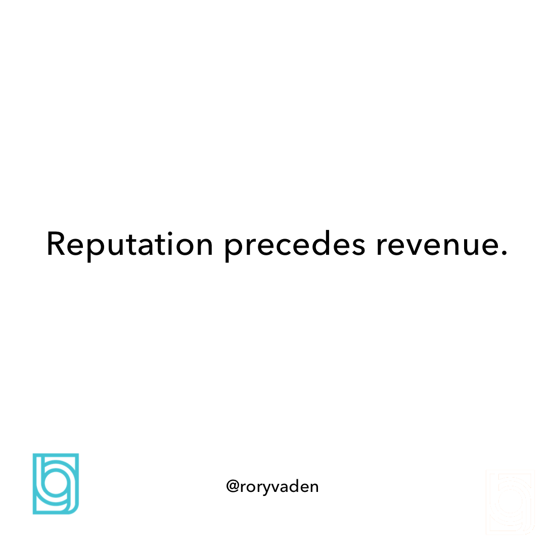 So, here's the question. If we spend all of this time thinking about how to grow revenue, how to make more money, how come we spend almost zero time thinking about our reputation?
