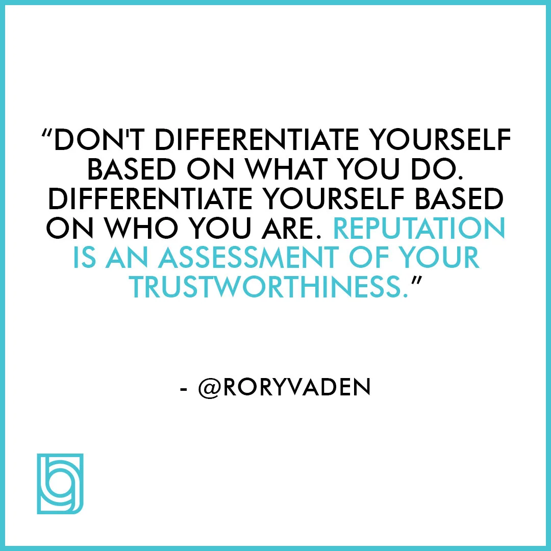 He told me, “Rory, the goal of personal branding is to find your uniqueness so that you can exploit it in the service of others.”