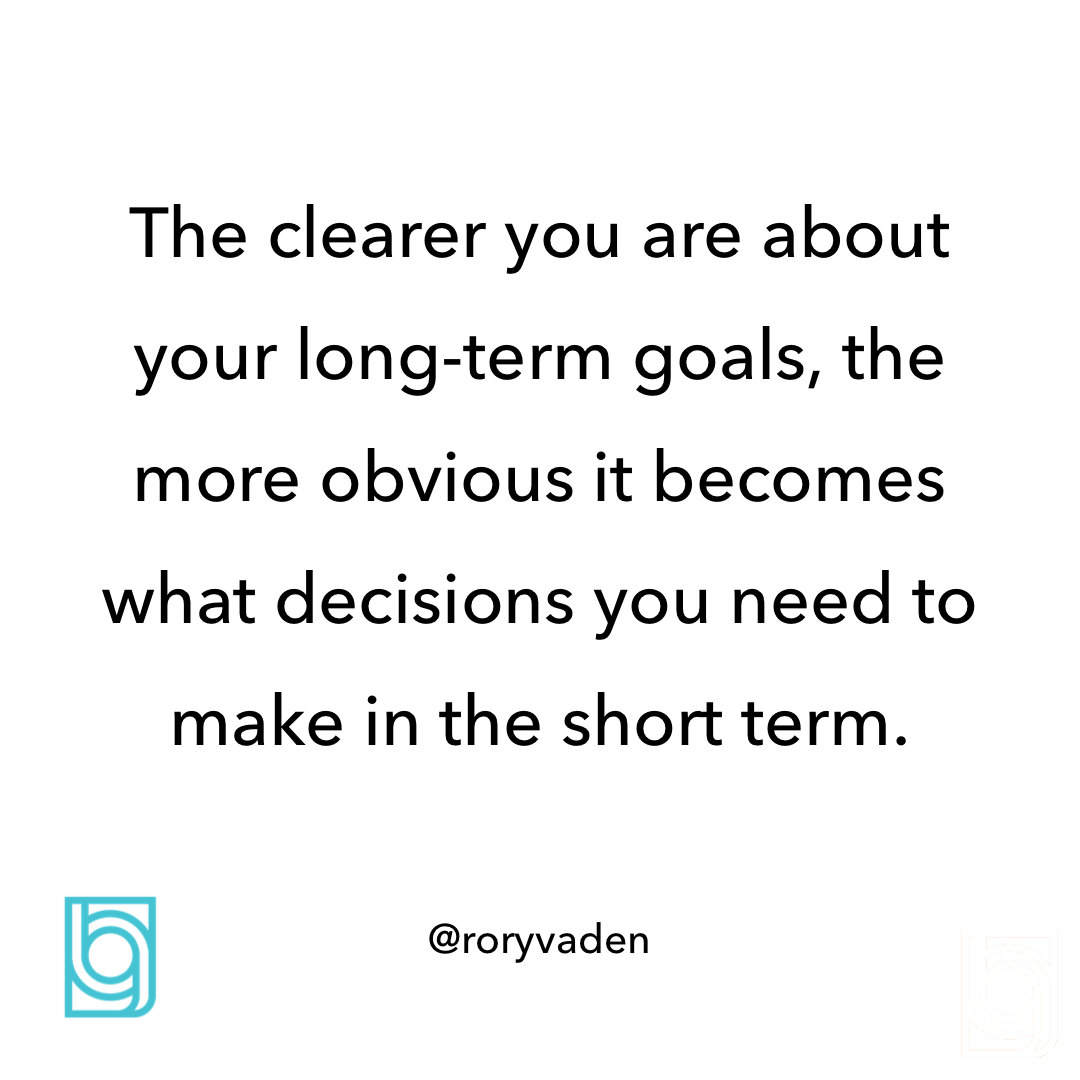 The clearer you are about your long-term goals, the more obvious it becomes what decisions you need to make in the short term.